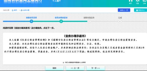 2.阅读《业务办理承诺书》,选择“我已认真阅读并同意遵守上述承诺”后点击下一步。