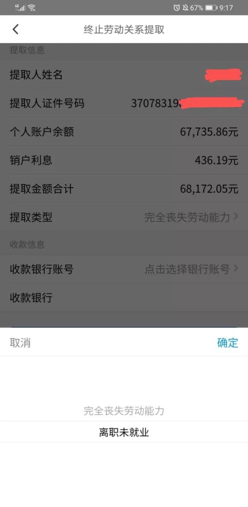 点击“我要提取”,进入公积金提取→选择提取原因,如“终止劳动关系提取”,进入提取页面→点击【确定】按钮,进入信息核对界面→选择提取类型,点击【确认无误并提交】按钮,进行资金结算。