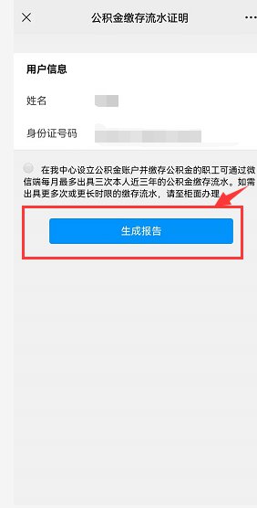 (一)微信搜索“无锡公积金”公众号,在微信端“业务办理”界面,点击进入“出具公积金缴存流水”页面,显示用户信息,包括:姓名、身份证号码。